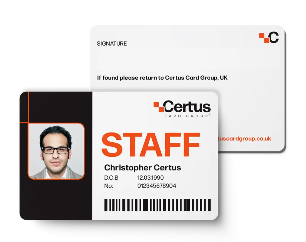 At Certus, we produce high-quality ID cards designed for everyday use. Our secure production processes allow cards to be personalised with photos, names, barcodes, QR codes or embedded technology, creating cards that are durable, professional and ready to integrate into your existing systems.